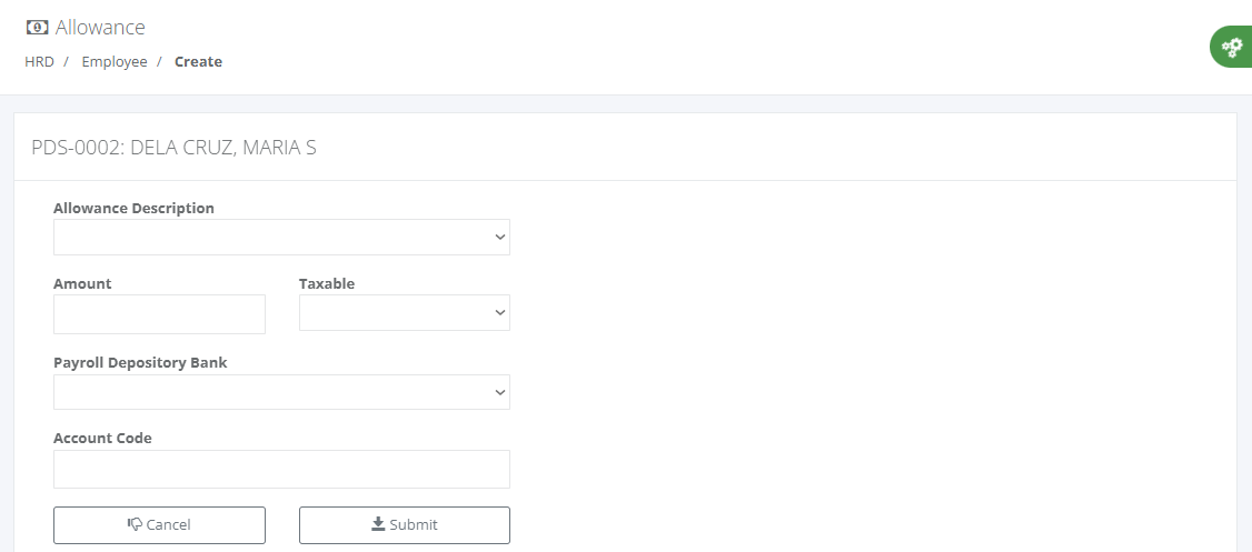 Click "Create" button to create a educational background and fill-up the entry field. After the input is done click the Submit button to save the entry or Cancel to ignore the entry and return to previous screen. (see screenshot below)
