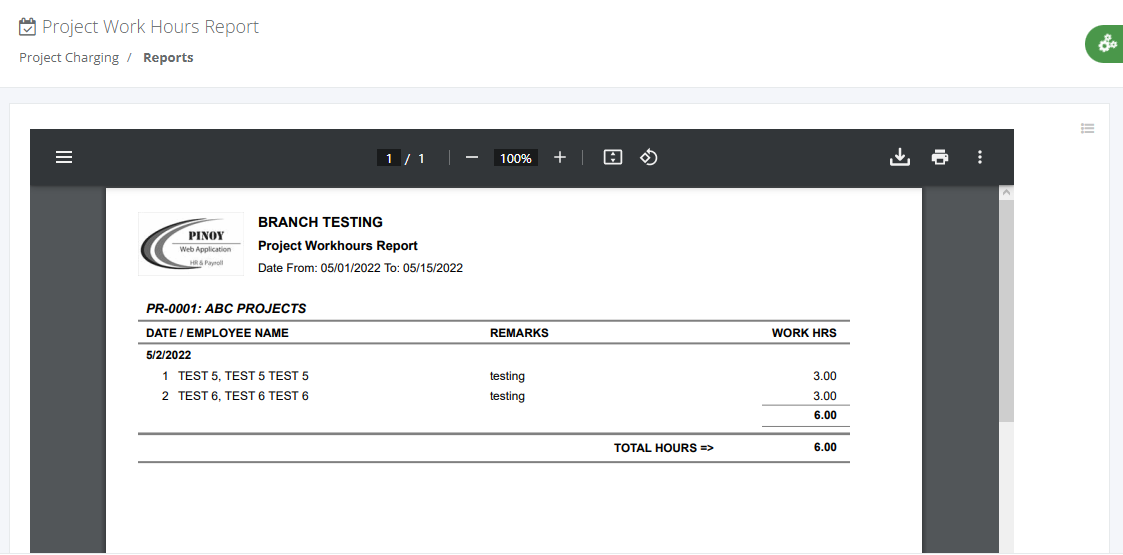 Project Charging -> Work Hour Reports -> By Project: tools to generate project work hours details report for visual checking of project daily working hours entries. The project work hours report is grouped by dates with sub-totals.